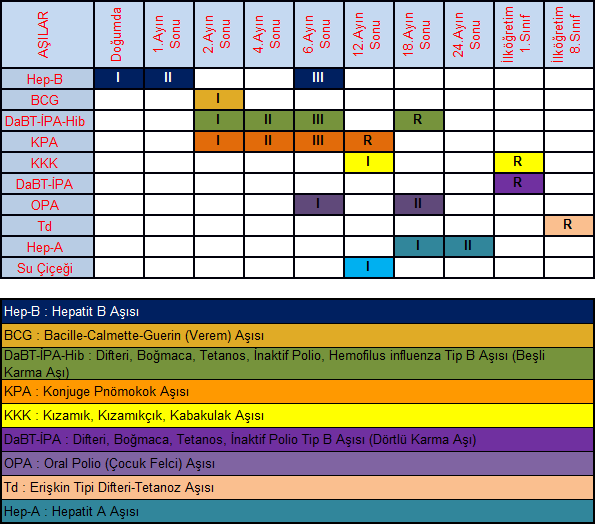 Yine bebeklerimizin aşağıdaki tabloya göre de aşıları yapılmaktadır. Eğer bebeğinizin gelişimi bu aylara uyuyorsa aşı yapılması için aile sağlığı merkezimize çağrılacaksısınız.